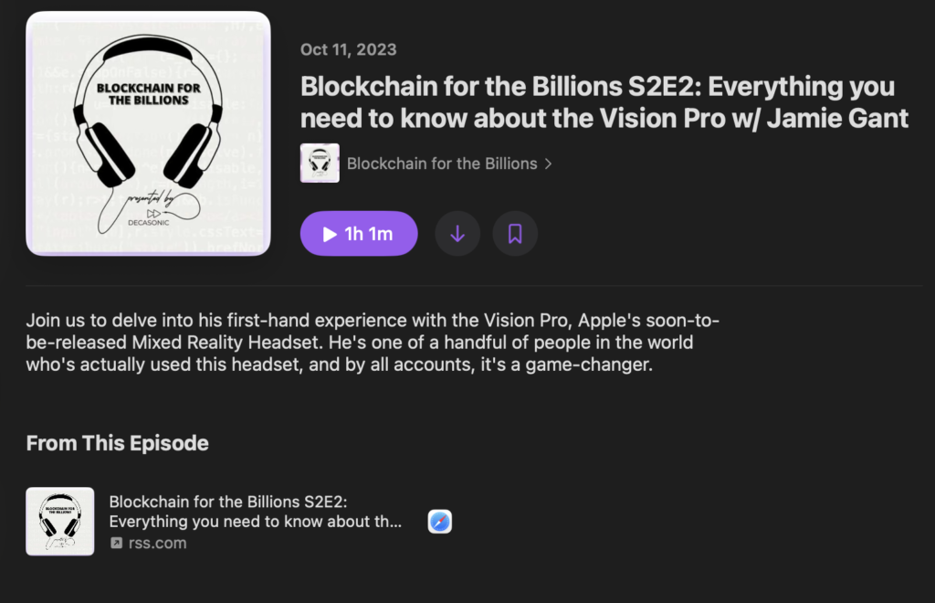 Blockchain for the Billions is a podcast presented by Decasonic and produced by Grace Casey.🎙️⏩ Tune in bi-weekly as Lauren Tierney, Grace Casey, & Danny Pantuso sit down with industry experts to unpack mainstream adoption of Web3 technology and beyond